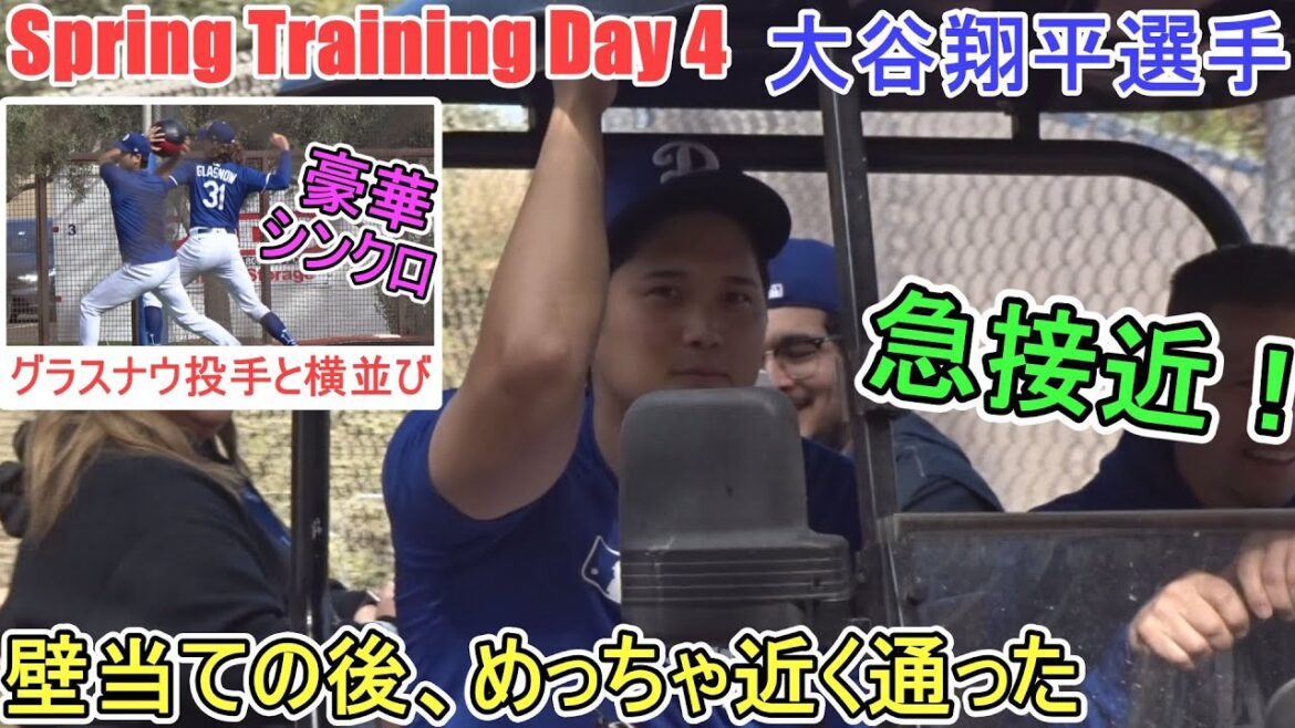 プライオボールで壁当てをする大谷翔平選手。タイラー・グラスナウ選手の隣り合わせで豪華共演。