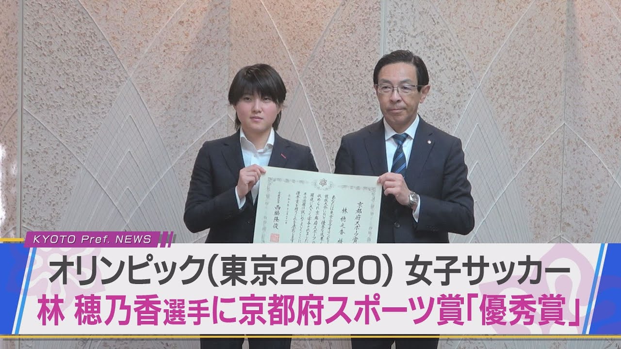 12月21日、第32 回オリンピック競技大会 女子サッカーにおいて、 8位入賞された林穂乃香選手に対し、京都府スポーツ賞「優秀賞」を授与しました。