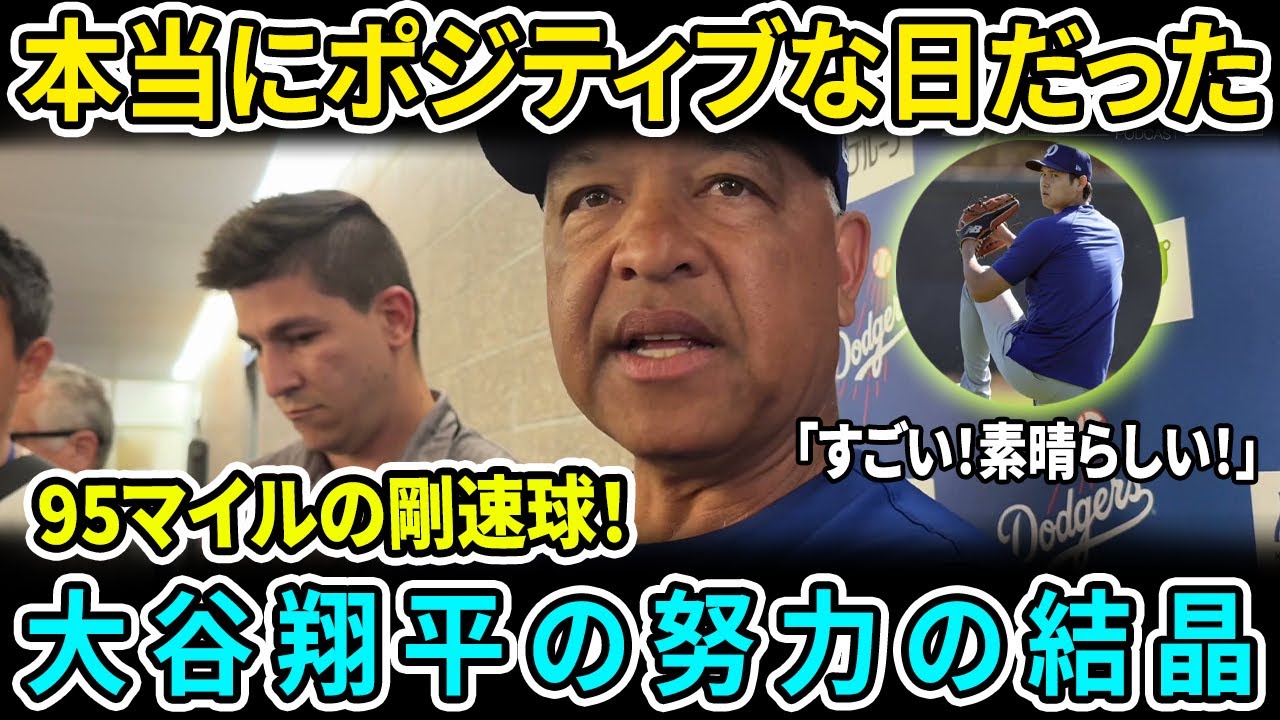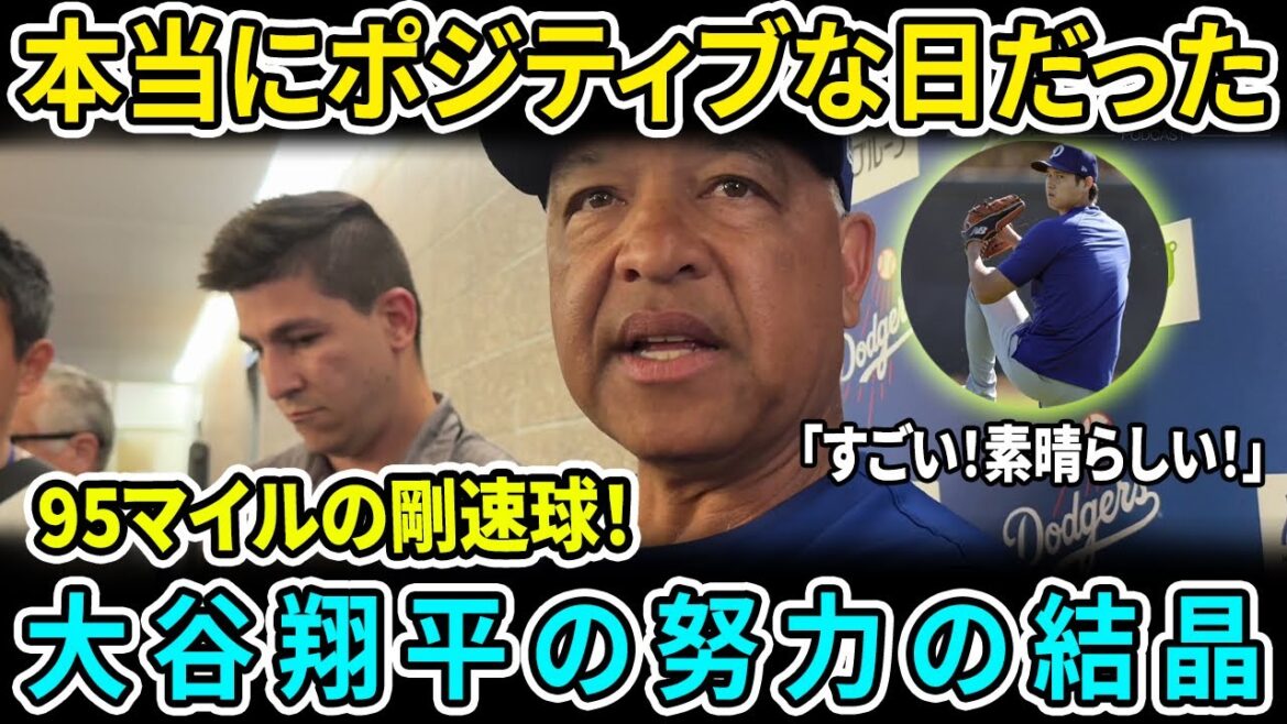 大谷翔平がブルペンで圧巻のピッチング!💥 95マイルの剛速球を披露し、ロバーツ監督も「すごい!素晴らしい!カッターは大きな一歩だ!」と絶賛。MLBで進化を続ける大谷翔平の姿に、チームもファンも驚嘆。日本の誇りとして、今シーズンも大活躍が期待される!🔥🇯🇵 彼の投球はどこまで進化するのか⁉️ ぜひコメントで感想を教えてください!💬⚾