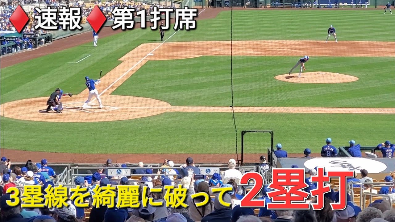 ♦️速報♦️第1打席【大谷翔平選手】リーディングオフでの打席ー技あり流し打ちで3塁線を綺麗に破って2塁打⚾️テオヘル選手の内野ゴロで先制点のホームイン⚾️vs レンジャース