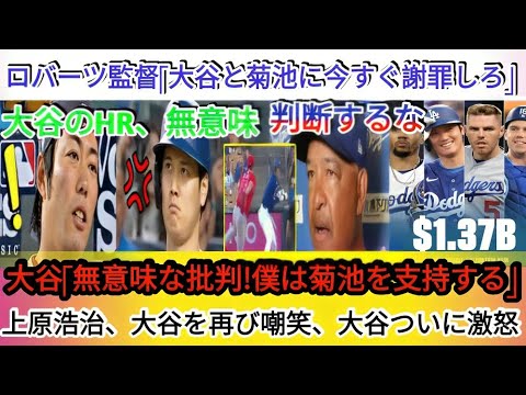 💥 この事態にロバーツ監督も黙っていられず、上原を批判。「大谷と菊池に今すぐ謝罪しろ」と厳しく言い放ちました。チーム内外で巻き起こるこの論争、どのような背景があるのでしょうか?🔥