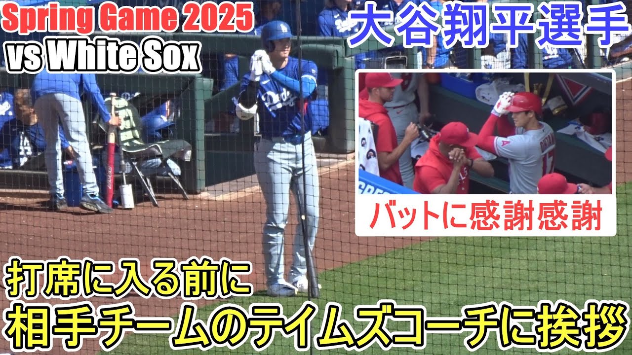 ♦第1打席♦打席に入る前に相手チームのテイムズコーチに挨拶をする大谷翔平選手。 ダグアウトからダグアウトまで全部見せ。 対テキサス・レンジャーズ~スプリングゲーム~ 1番DHで出場の大谷翔平選手。2025.03.06 @shinsukehandyman #大谷翔平 #ホームラン #ドジャース #シカゴBaseballChicagoDodgersHomeHRJapanLos AngelesMajor League BaseballMLBohtaniOhtani ShoheirunshoheiShohei OHtaniwhite soxコーチテイムズドジャースバルガスホームランホワイトソックスロサンゼルス大谷大谷翔平日本翔平速報 NIHON2020.COM