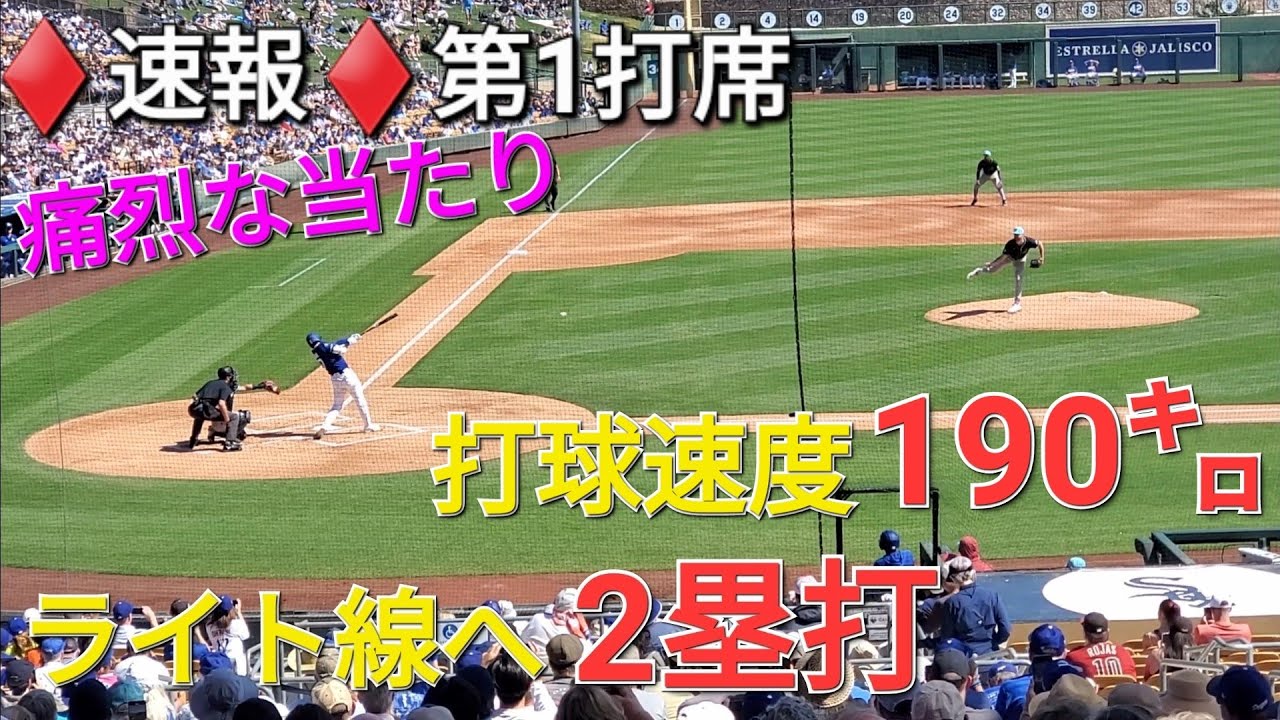 ♦️速報♦️第1打席【大谷翔平選手】リーディングオフでの打席ー ライト線へ二塁打ー打球速度190㌔⚾️エドマンド選手とフリーマン選手が続いて先制点のホームイン vs Dバックス