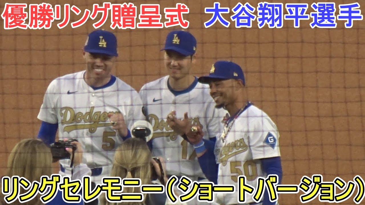 リングセレモニーで優勝リングを受け取る大谷翔平選手。人差し指に着けてフレディ・フリーマン選手とムーキー・ベッツ選手と共に記念撮影を行い、喜びを分かち合う。 1番DHで出場の大谷翔平選手。2025.03.28 @shinsukehandyman #大谷翔平 #dodgers #ドジャース 2025BaseballceremonyDetroitDodgersHomeHRJapanLos AngelesMajor League BaseballMLBohtaniOhtani ShoheiRingrunshoheiShohei OHtaniTigersセレモニータイガースデトロイトドジャースホームランリングロサンゼルス大谷大谷翔平日本翔平贈呈式速報 NIHON2020.COM