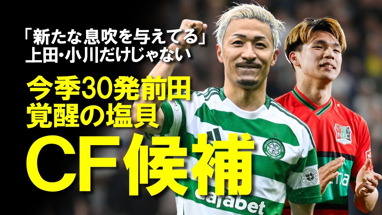 日本代表から途中離脱の上田綺世、怪我によるベンチ外が続く小川航基に変わり代表のセンターフォワード候補は誰になるのか?CF覚醒の前田大然や、進化を遂げるU-20日本代表FW塩貝健人のサプライズ招集などゆっくり解説。