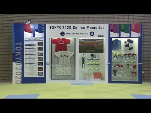 野球とソフトボール競技で金メダルに輝いた日本代表選手のサイン入りユニフォームや、大会エンブレムが刻印された福島県内の伝統工芸品など27種類・約50点が展示されている。