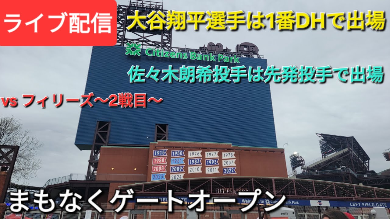 【ライブ配信】対フィラデルフィア・フィリーズ〜シリーズ2戦目〜大谷翔平選手は1番DHで出場⚾️佐々木朗希投手は先発投手で出場⚾️まもなくゲートオープン⚾️