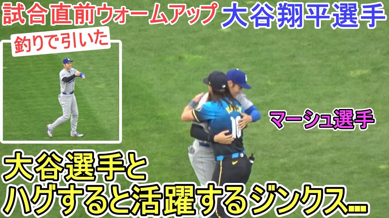 試合直前ウォームアップ中に元チームメイトのブランドン・マーシュ選手とハグで挨拶を交わす大谷翔平選手。大谷翔平選手とハグをするとその日の試合に活躍するジンクスはまた健在なのか?この日、マーシュ選手は貴重な打点を挙げた。 対フィラデルフィア・フィリーズ~シリーズ初戦~ 1番DHで出場の大谷翔平選手。2025.04.04 @shinsukehandyman #大谷翔平 #dodgers #ドジャース BaseballBrandonDodgersHomeHRJapanLos AngelesMajor League BaseballMarshMLBohtaniOhtani ShoheiPhiladelphiaPhilliesrunshoheiShohei OHtaniドジャースフィラデルフィアフィリーズブランドンホームランマーシュロサンゼルス大谷大谷翔平日本翔平速報 NIHON2020.COM