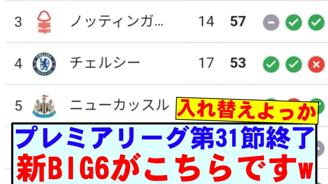 【速報】プレミアリーグ第31節が終了!最新の順位がこちらです!!!