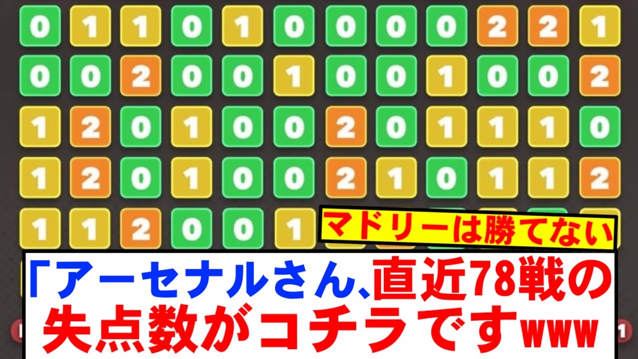 【鉄壁】マドリー戦を控えたアーセナルさん、直近78戦の失点数がコチラですwwwww