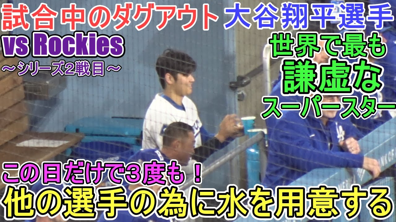 試合中のドジャースダグアウト。大谷翔平選手は他の選手の為に自ら進んで水を用意する。3度もMVPを獲得した肩書よりもその謙虚な姿勢にこそ人としての『凄さ』がにじみ出ている。 対コロラド・ロッキーズ~シリーズ2戦目~ 1番DHで出場の大谷翔平選手。2025.04.15 @shinsukehandyman #大谷翔平 #dodgers #ドジャース 2025BaseballDodgersHomeHRJapanLos AngelesMajor League BaseballMLBohtaniOhtani ShoheirunshoheiShohei OHtaniドジャースホームランロサンゼルス大谷大谷翔平日本水汲み翔平速報 NIHON2020.COM