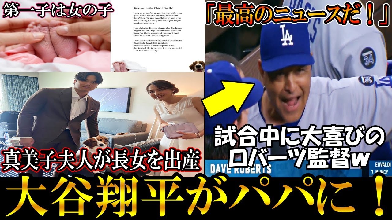 大谷翔平がパパに!真美子夫人が長女を出産!赤ちゃんとの3ショット写真も!ロバーツ監督は試合中に長女誕生を祝福!shohei ohtani