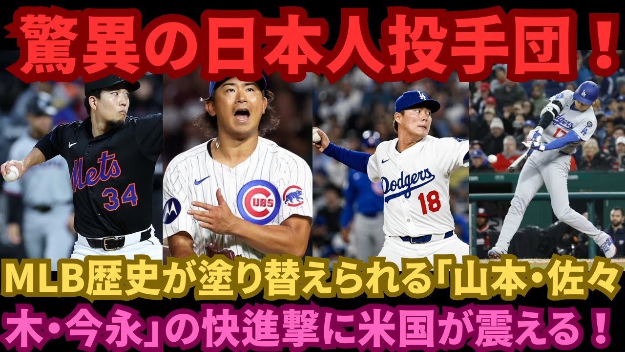 MLBで日本人選手が大活躍!山本由伸、佐々木広大、今永昇太が防御率ランキングを席巻し、アメリカを震撼させています。大谷翔平と鈴木誠也も打撃で大暴れ!MLBレジェンドたちが語る「日本人支配の時代」の実態と将来予測を徹底解説します。#MLB #日本人選手 #大谷翔平 #佐々木広大BaseballJapanMajor League BaseballMLBメジャーリーグ大谷翔平山本由伸日本日本人選手野球界鈴木誠也 NIHON2020.COM