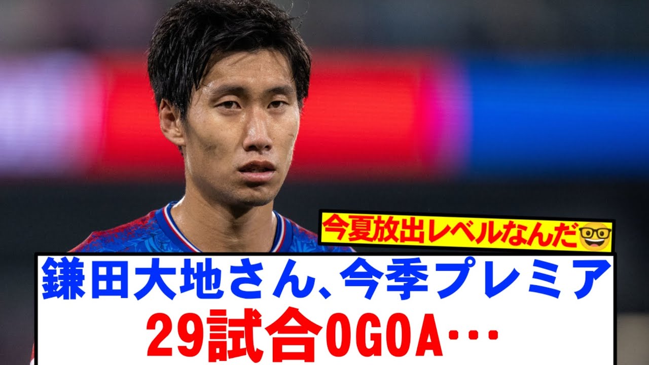 【悲報】クリスタルパレス鎌田_28_、今季プレミアリーグでの成績がこちら…