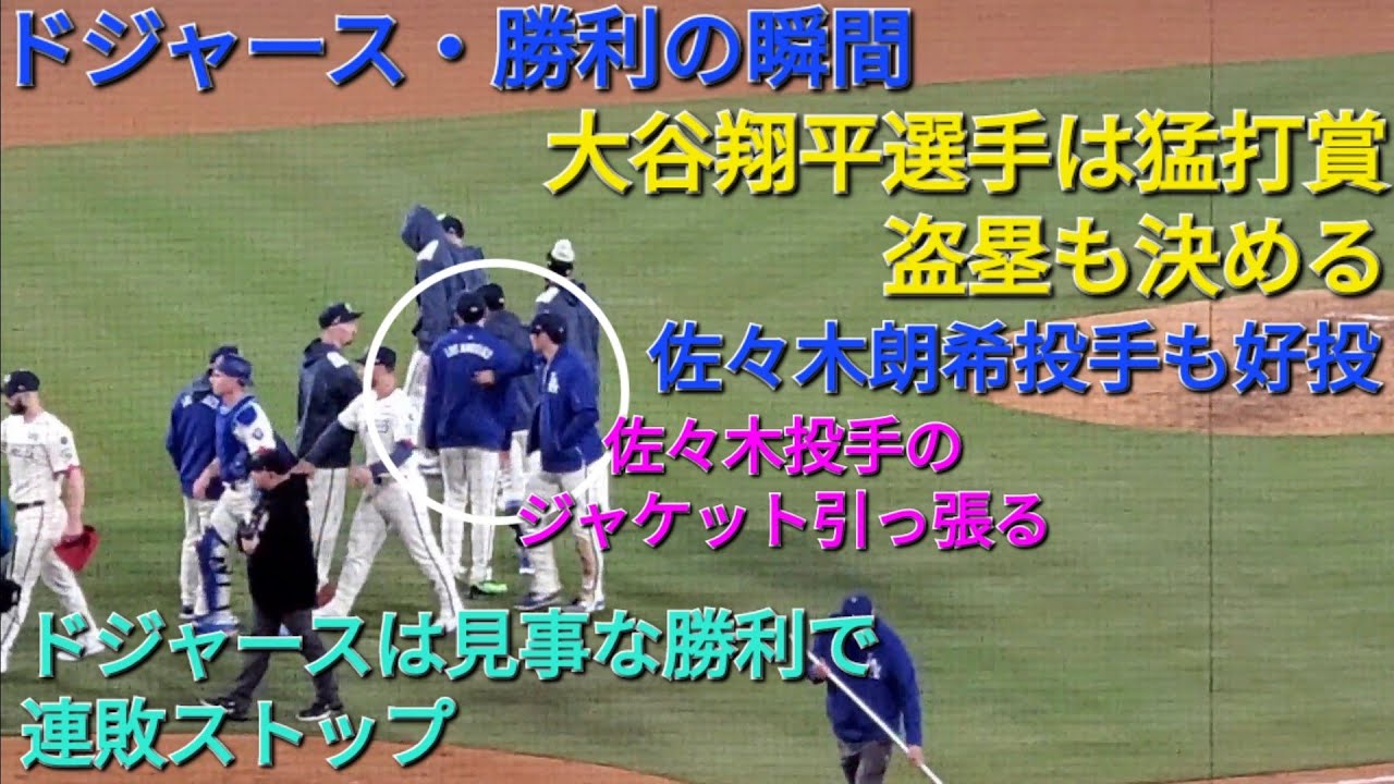 【ドジャース・勝利の瞬間】大谷翔平選手は猛打賞と盗塁を決めて大活躍⚾️佐々木朗希投手はナイスピッチング⚾️ドジャースは見事な勝利で連敗ストップ⚾️