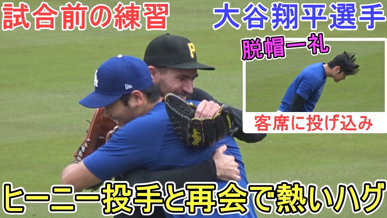 試合前の練習でキャッチボールをする大谷翔平選手。ボールをスタンドに2度投げ込んでファンに脱帽して一礼。キャッチボールの途中でヒーニー投手と再会してハグで挨拶をする。 対ピッツバーグ・パイレーツ~シリーズ初戦~ 1番DHで出場の大谷翔平選手 2025.04.25 @shinsukehandyman #大谷翔平 #shoheiohtani #dodgers 2025AndrewBaseballDodgersHeaneyJapanMajor League BaseballMLBohtaniPiratesPittsburgshoheiwinアンドリューウォームアップダグアウトドジャースハイタッチパイレーツヒーニーピッツバーグ勝利大谷大谷翔平日本翔平 NIHON2020.COM