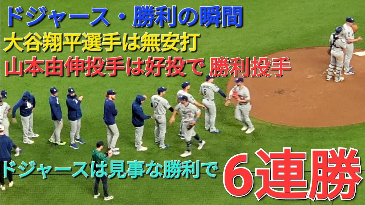 【ドジャース・勝利の瞬間】大谷翔平選手は無安打⚾️山本由伸投手は好投で勝利投手⚾️ドジャースは見事な勝利で6連勝 vs アトランタ・ブレーブス〜シリーズ初戦〜