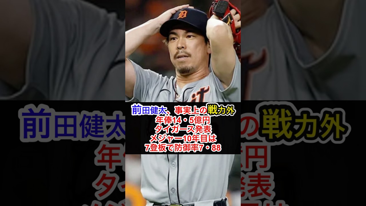 【タイガース 投手 前田健太】事実上の戦力外 年俸14・5億円 タイガース発表 メジャー10年目は7登板で防御率7・88(デイリースポーツより抜粋)