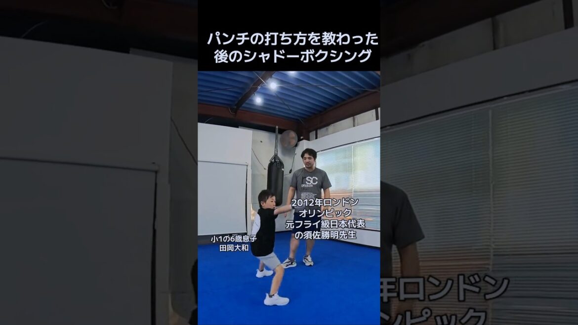 元オリンピック選手からパンチの打ち方を教わった後の6歳息子のシャドーボクシング