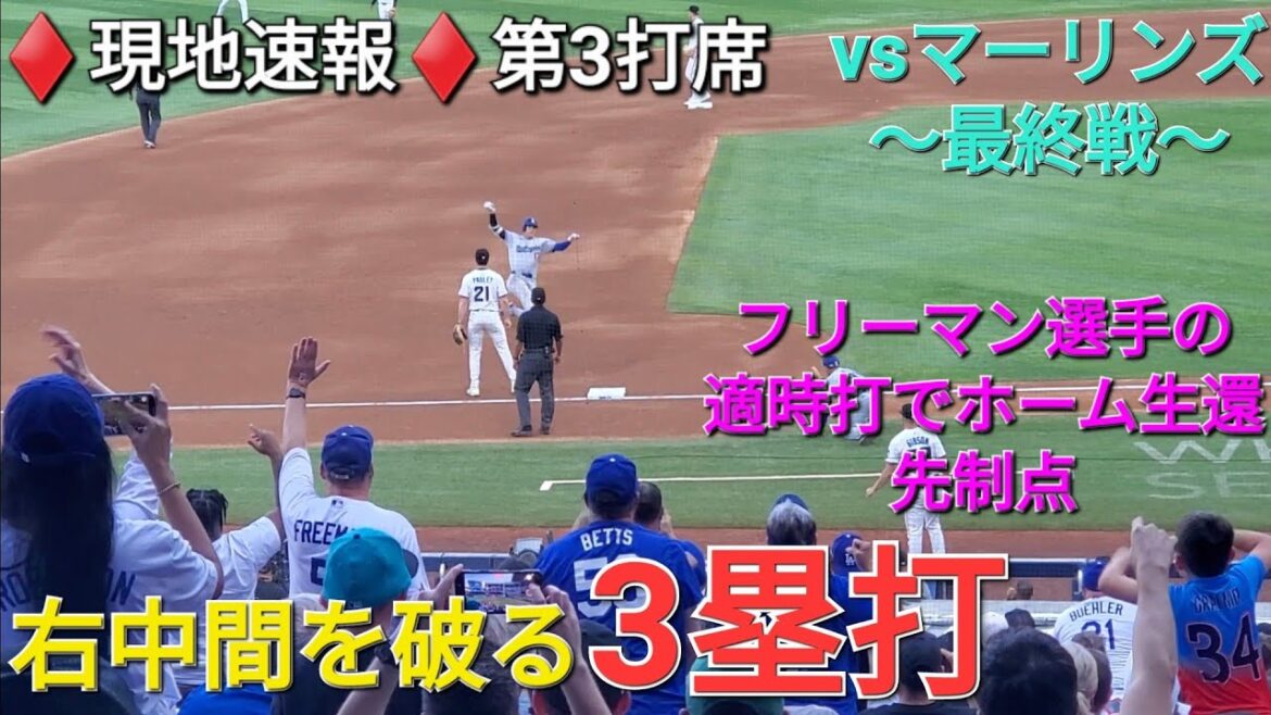 ♦️現地速報♦️第3打席【大谷翔平選手】1アウトランナー無しでの打席 ー 右中間を破る3塁打で好機を創出⚾️フリーマン選手のタイムリーで先制点のホームインvs マーリンズ・マーリンズ〜シリーズ最終戦〜