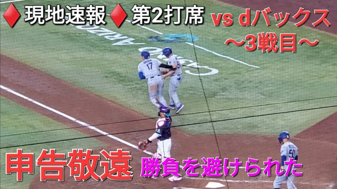 ♦️現地速報♦️第2打席【大谷翔平選手】2アウトランナー1塁での打席 – ボールカウント3ー0からの申告敬遠 vs アリゾナ・ダイヤモンドバックス〜シリーズ3戦目〜