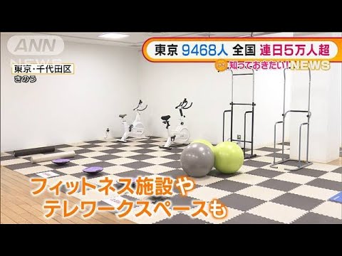 去年、東京オリンピックでにぎわった「東京スポーツスクエア」に3カ月間、個人の部屋など、およそ350床を設置し、フィットネス施設やテレワークスペースも用意されています。