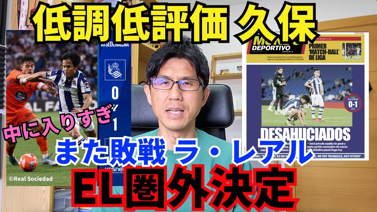 また敗戦ラ・レアル、EL圏外決定。中に入りすぎの久保、低調なプレーと低評価。今夏は久保も移籍を。|ラ・リーガ 第36節 レアル・ソシエダ vs セルタ レビュー