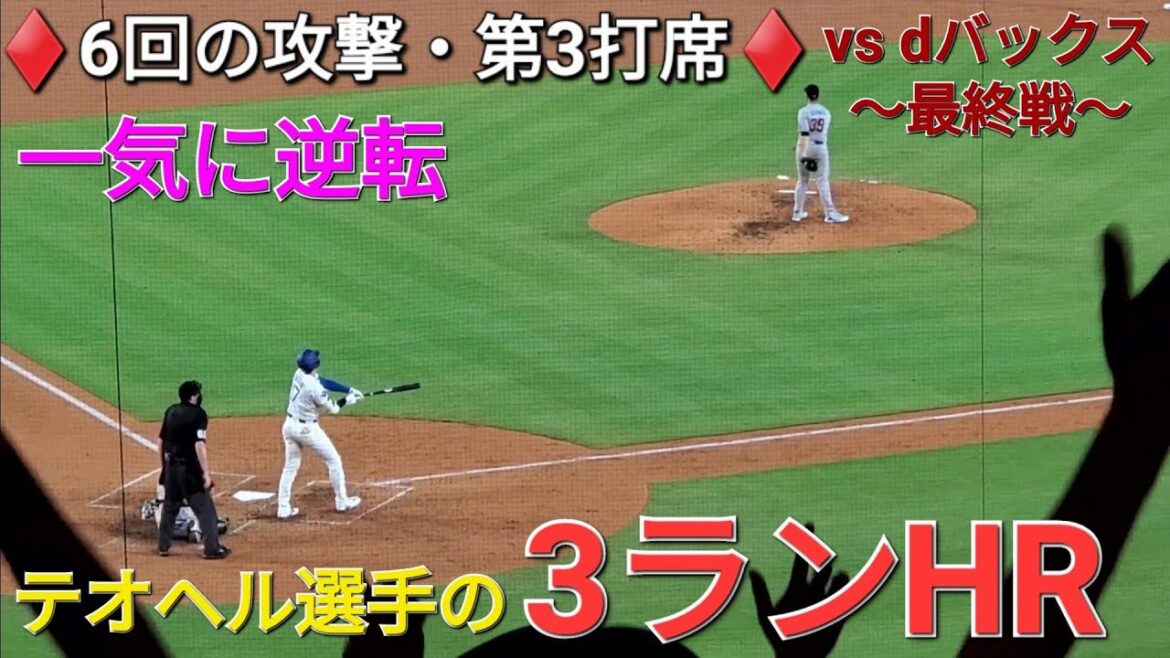 ♦️6回の攻撃・第3打席♦️【大谷翔平選手】ノーアウトランナー1塁での打席⚾️ベッツ選手サード強襲安打で好機を創出⚾️テオヘル選手のスリーランホームランで逆転に成功 vs Dバックス〜シリーズ最終戦〜
