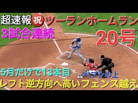 ♦️超速報♦️㊗️20号ツーランホームラン〜レフト逆方向へ3試合連続〜ペプシコーラの看板の上超えた!【大谷翔平選手】vsクリーブランド・ガーディアンズ〜シリーズ2戦目〜