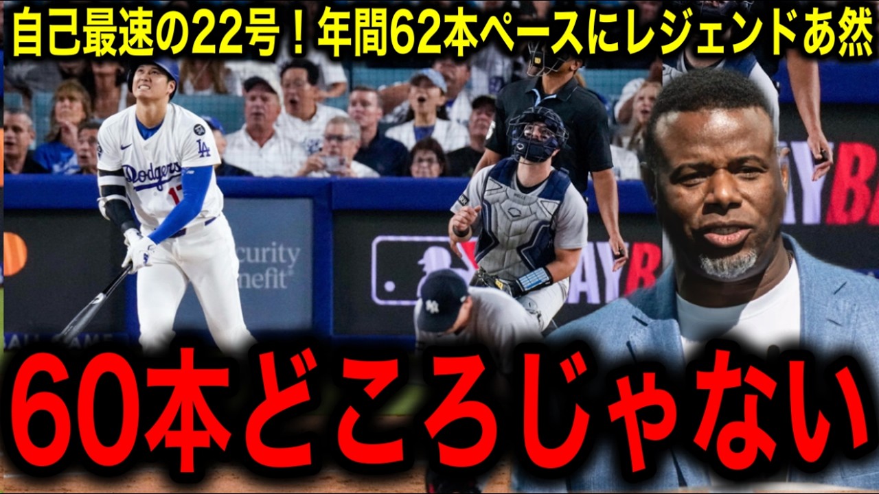 【大谷翔平】衝撃の21、22号でニューヨークが沈黙!年間62本塁打ペースにケン・グリフィー・ジュニア氏驚愕の一言!