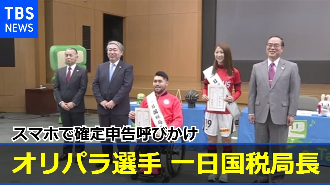 今月16日から始まる確定申告を前に、東京オリンピック・パラリンピック選手らが「一日国税局長」に任命され、スマートフォンでの確定申告を呼びかけました。
