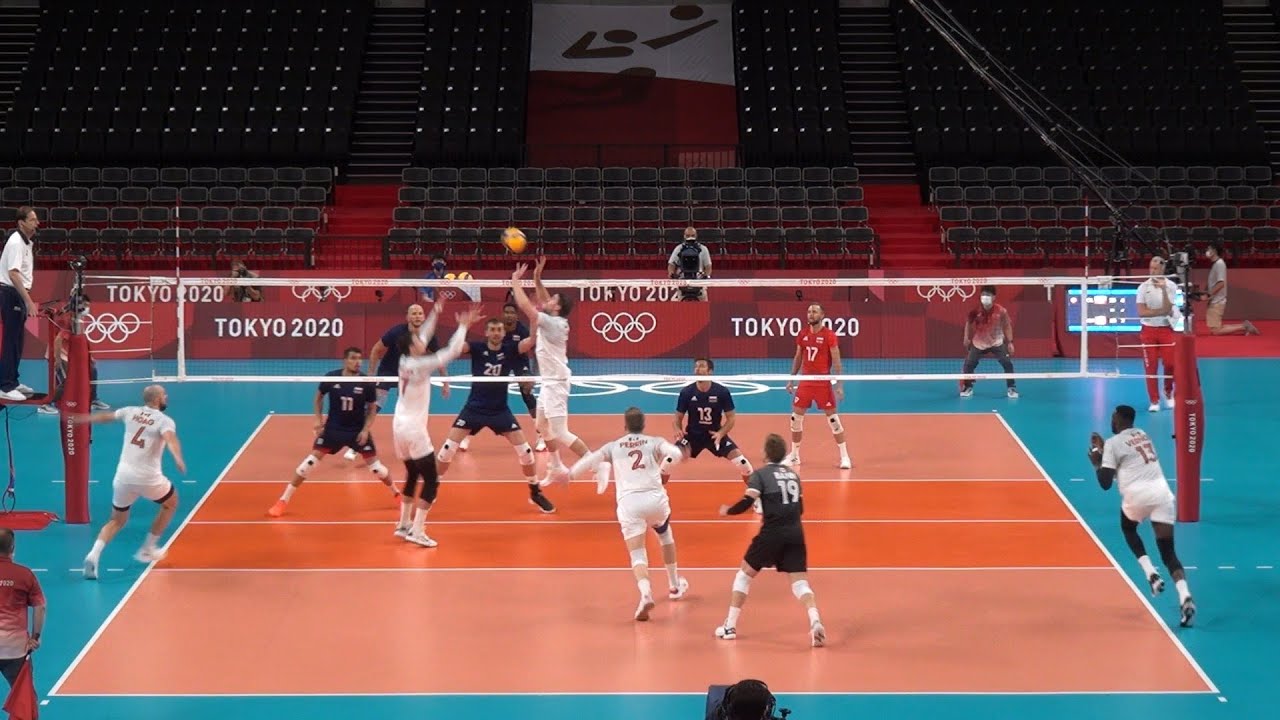 TJ Sanders setting Team Canada at Tokyo 2020 Olympic Games. Spikes by John Gordon Perrin, Nicholas Hoag, Graham Vigrass, Sharone Vernon Evans, Arthur Szwarc and others.