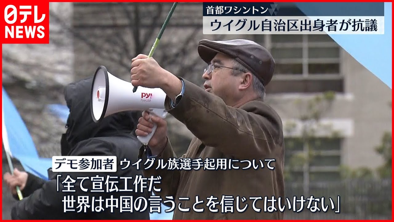 一方、首都・ワシントンでもウイグル自治区出身者が抗議の声を上げました。中国大使館の前では、ウイグルの人権問題に抗議して五輪開催に反対するデモが行われました。