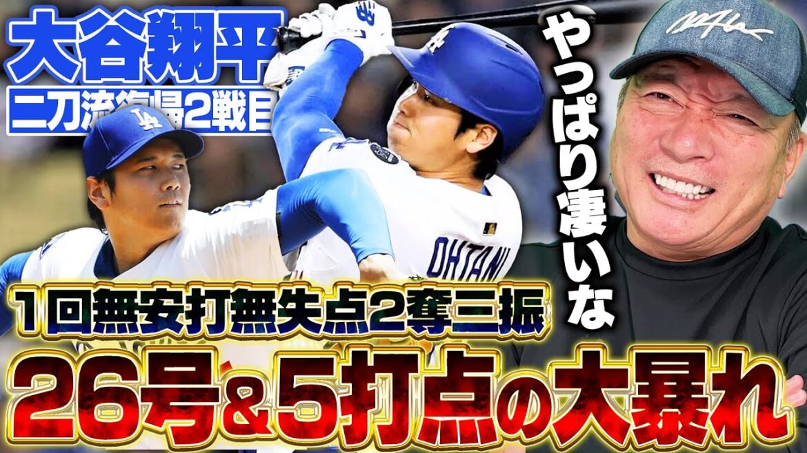 ドジャース・大谷翔平投手(30)が22日(日本時間23日)、本拠地・ナショナルズ戦に「1番・投手、DH」で先発出場し、投手としては最速98・8マイル(約159キロ)で1回無安打無失点2奪三振。打っては26号2ランを含む2安打5打点で自身の“二刀流最多”を更新した。
