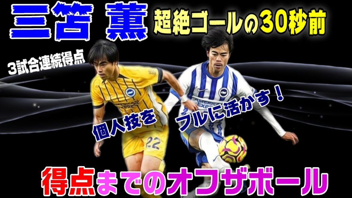 3連続得点で絶好調の三笘の超絶ゴールまでの動きを見て行きます!