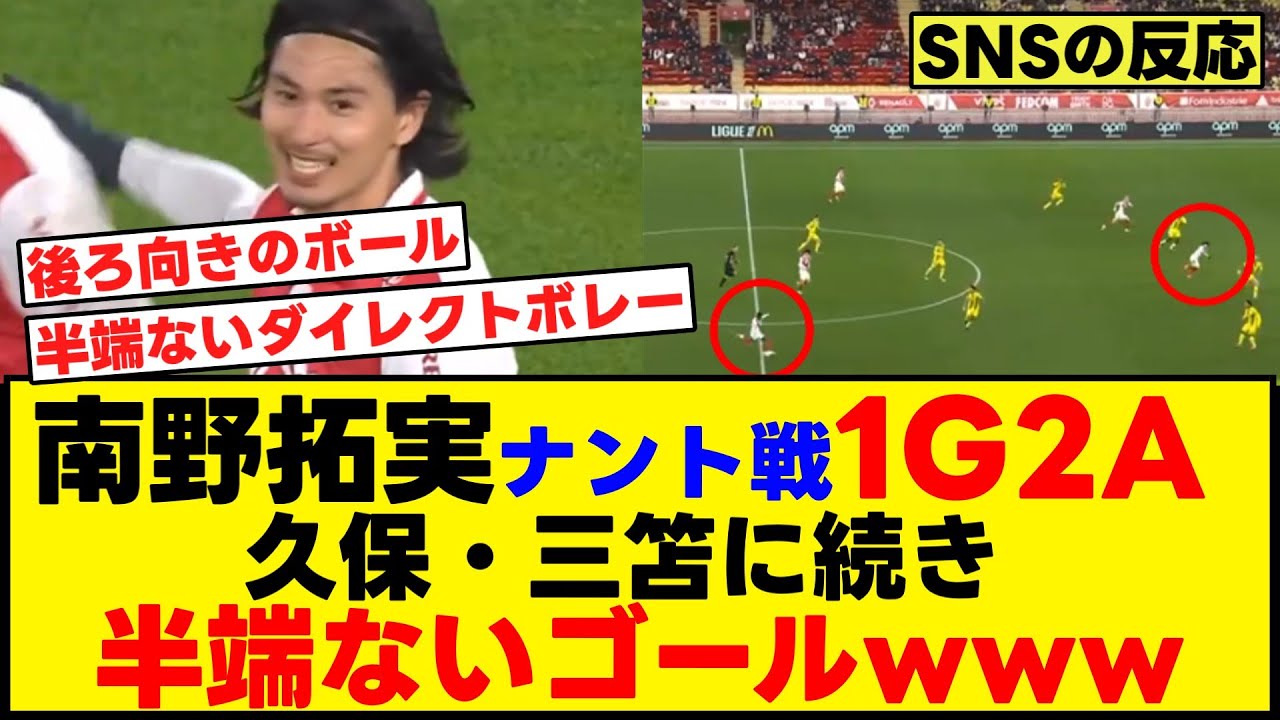 南野拓実が華麗なボレーシュートを決め、今シーズン2得点目を記録! 1ゴール2アシストの大活躍で、モナコの圧巻の7得点勝利に貢献した。 前半45分、ラミン・カマラからのロングフィードを、南野が見事なダイレクトボレーで合わせてゴール。 チームに勝ち越し点をもたらした。このゴールについてSNSの反応をまとめました。#サッカー #サッカー日本代表 #南野拓実 #久保建英 #三笘薫 #モナコ #ナント #リーグアン #ゴール 2022 FIFA World Cup2022 World CupasモナコFIFA 2022FIFA World Cup 2022FIFA World Cup Qatar 2022footballJapanqatar 2022soccerWorld CupWorld Cup 2022アシストゴールサッカーナントモナコリーグアン三笘薫久保建英南野拓実反応集日本日本代表 NIHON2020.COM