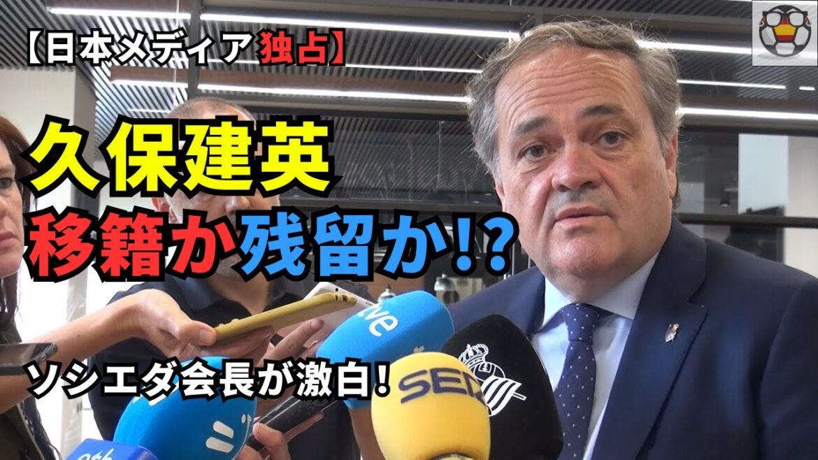 レアル・ソシエダの本拠地サン・セバスティアンで、久保建英選手の去就についてソシエダのアペリバイ会長を直撃!移籍か残留か、その真相を激白します。さらに移籍市場の動向やクラブの補強方針、スポンサーの話題まで、現地で徹底取材しました。