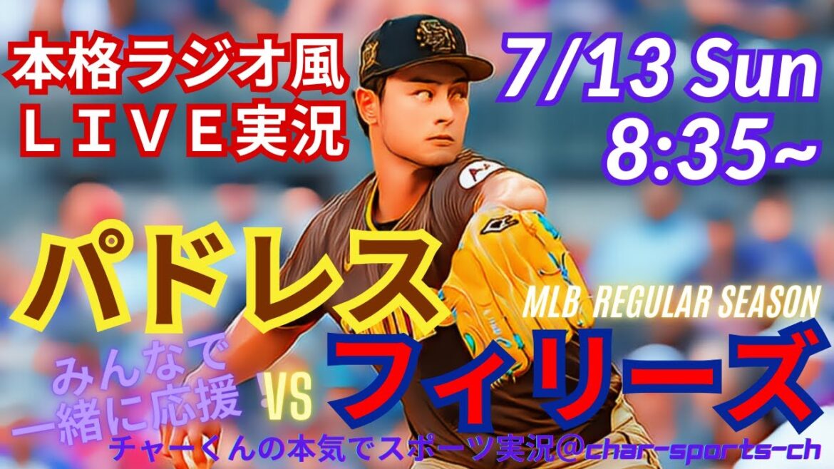 【ダルビッシュ先発!リアルラジオ風実況】パドレスVSフィリーズ3連戦第2戦を同時視聴実況ライブ応援!ファンの皆さんと一緒に応援したいと思います!今後の配信予定はグーグルカレンダーで確認できます。ご自身のGoogleカレンダーと同期してください→https://bit.ly/char-kun
