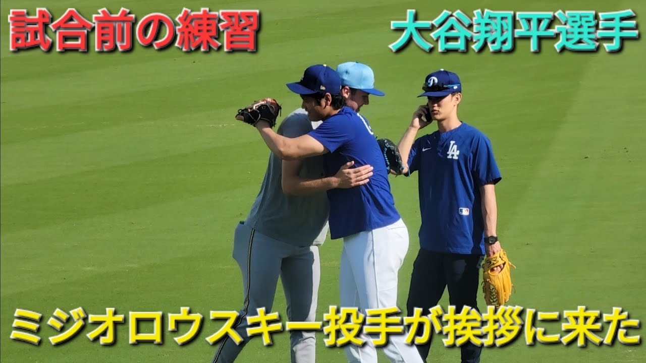 試合前の練習〜ミジオロウスキー投手が挨拶に来た〜【大谷翔平選手】vsミルウォーキー•ブリュワーズ〜シリーズ初戦〜