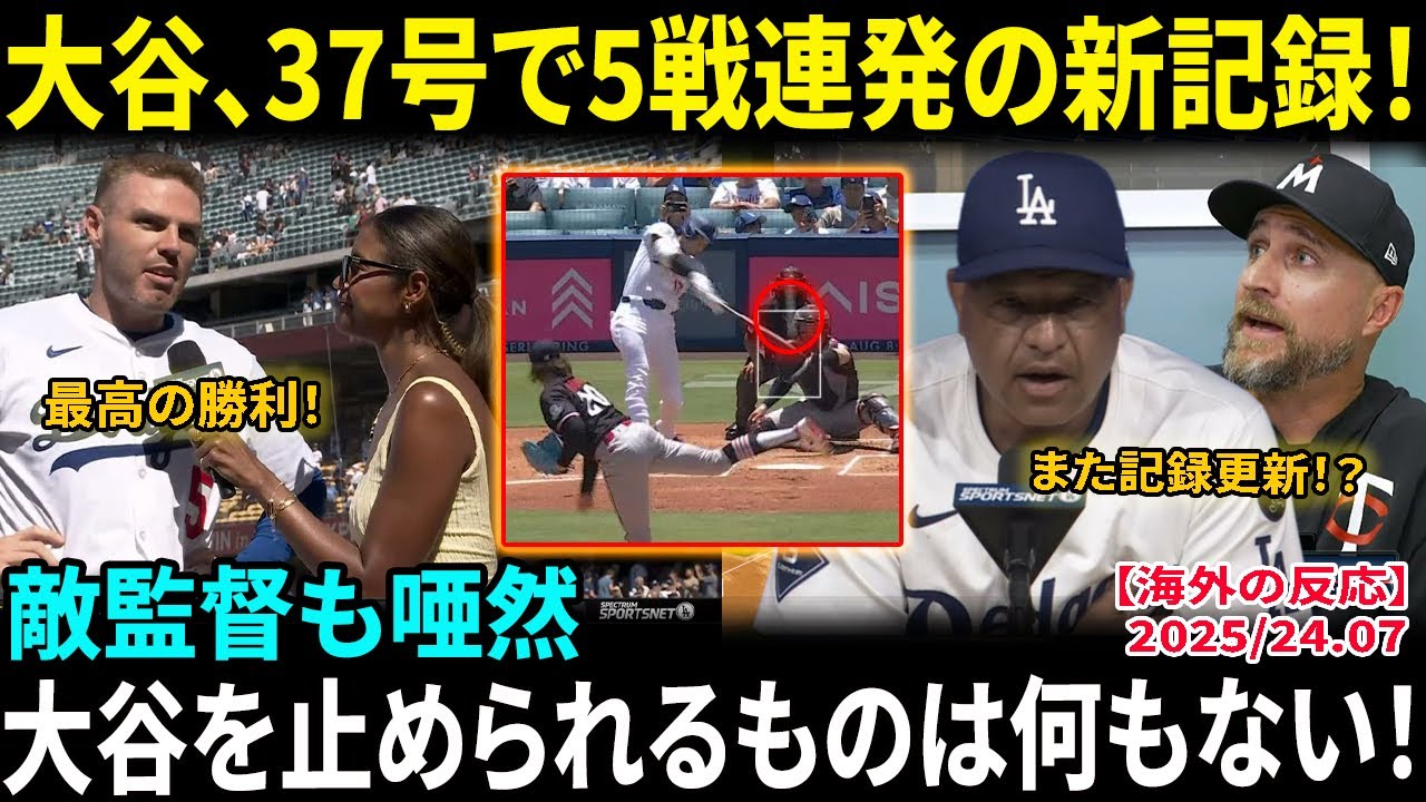 【大谷翔平】前人未到の5戦連発37号炸裂!敵将が選んだ“敬遠”が地獄の入口だった…ロバーツ監督は涙「これが野球の美しさだ」ド軍がサヨナラ勝ち!【海外の反応/MLB/野球】