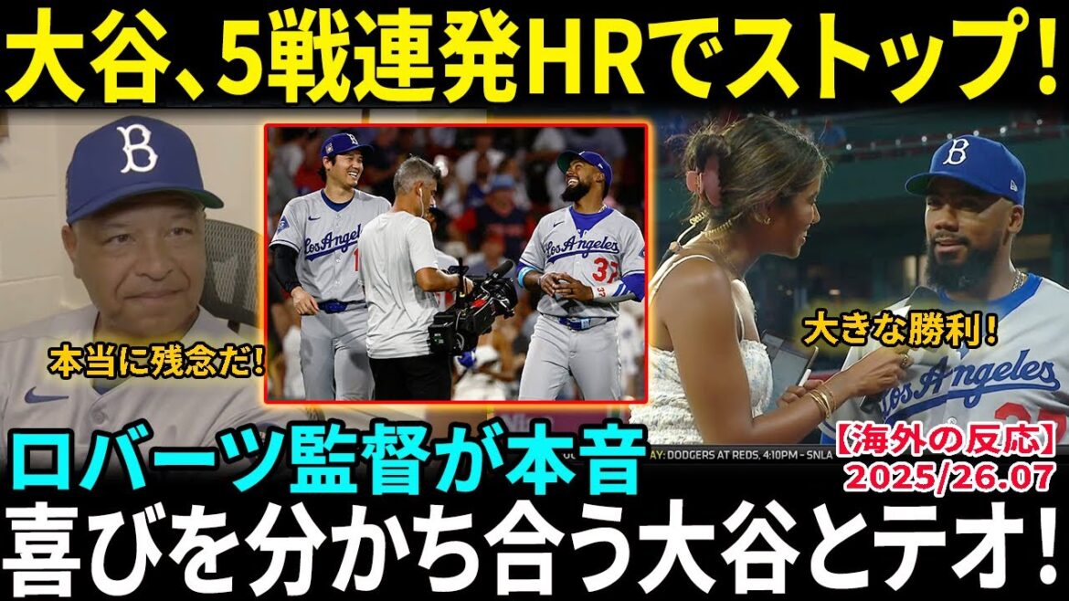 【大谷翔平】6戦連発ならず…ロバーツ監督が本音「本当に残念だ」ファン注目!テオスカーのHRを笑顔で祝福する姿に感動【海外の反応/MLB/野球】