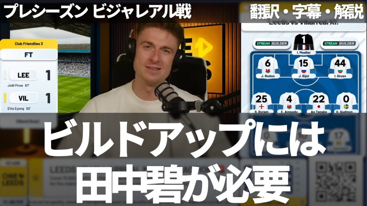 リーズ・ユナイテッドはプレシーズンマッチで、ビジャレアルと対戦し、1-1の引き分けに終わった。田中碧は63分から途中出場し、良いプレーを見せたようです。