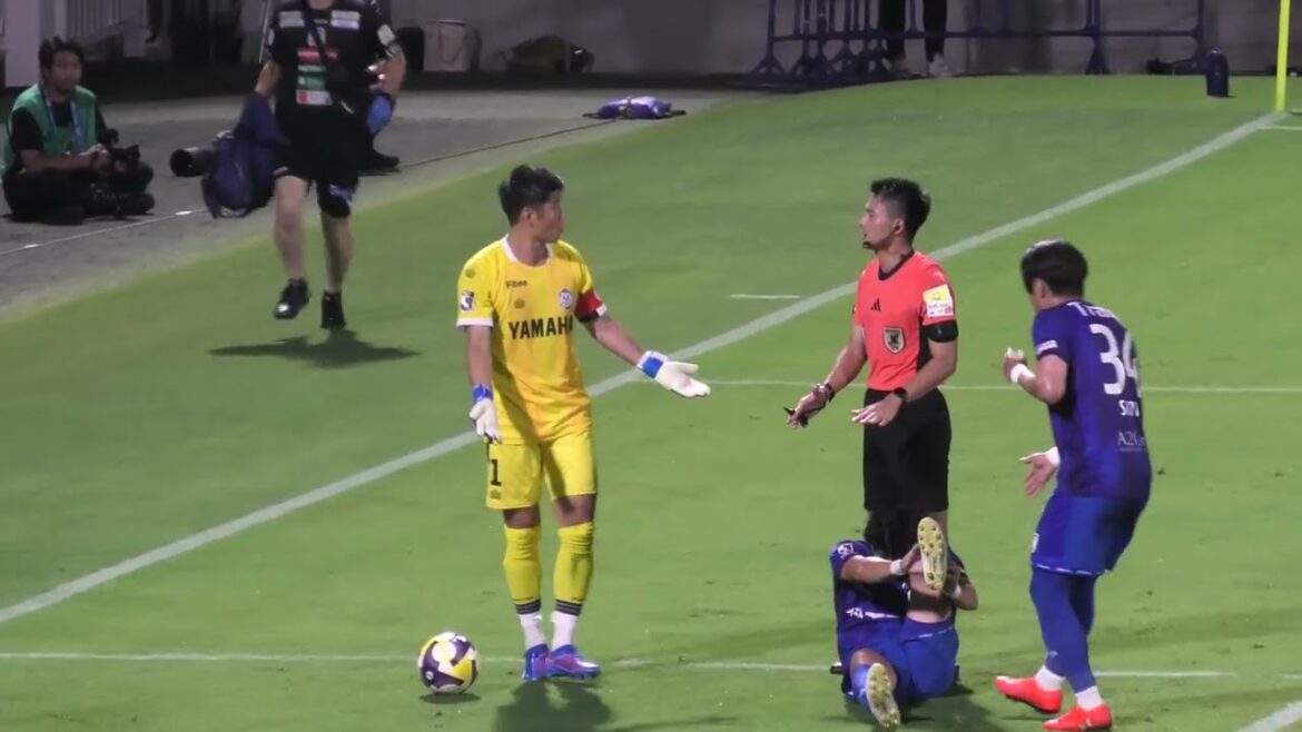 ジュビロ磐田 GK川島永嗣選手が主審に競り合いの際にブラウブリッツ秋田の選手に体当たりされた事?を訴える 2025/8/2 J2 第24節 ヤマハスタジアム