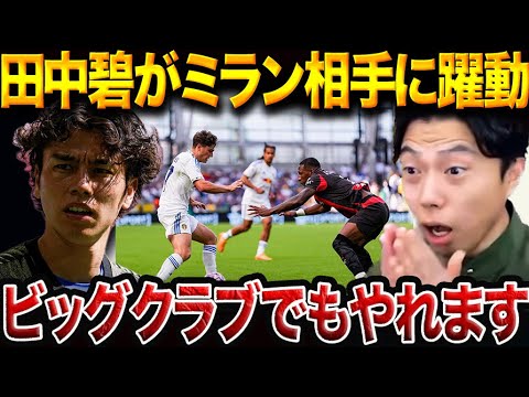 日本代表MF田中碧が所属する昇格組リーズが、セリエAの強豪ミランと親善試合で激突!田中は中盤の一角として先発し、攻守に存在感を発揮。序盤から鋭いボール奪取と精度の高いパスで攻撃を組み立て、ビッグクラブでも通用する実力を証明しました。