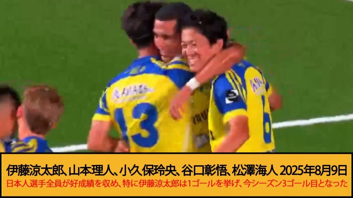 伊藤涼太郎、山本理人、小久保玲央、谷口彰悟、松澤海人 2025年8月9日 – 日本人選手全員が好成績を収め、特に伊藤涼太郎は1ゴールを挙げ、今シーズン3ゴール目となった。