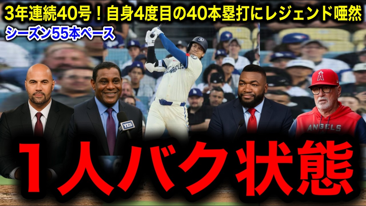【大谷翔平】人類の限界を粉砕する40号!日本人唯一の偉業を3年連続4度目、異常すぎるペースにレジェンド騒然