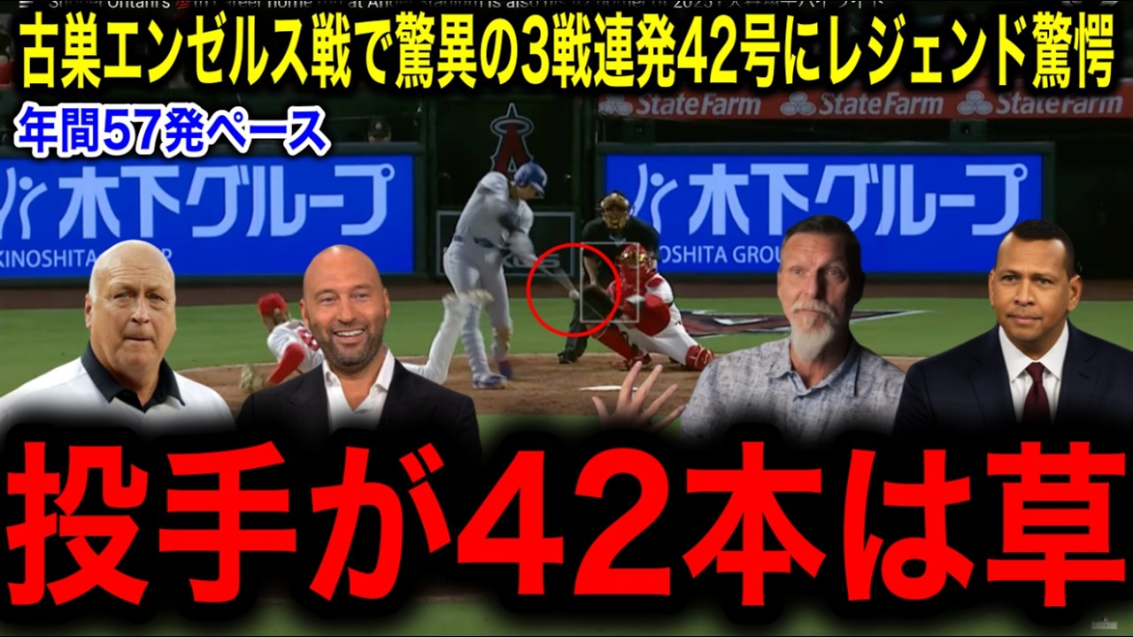 【大谷翔平】古巣粉砕!3戦連発42号で本塁打王争い再び同率首位!年間57発ペースにレジェンド驚愕