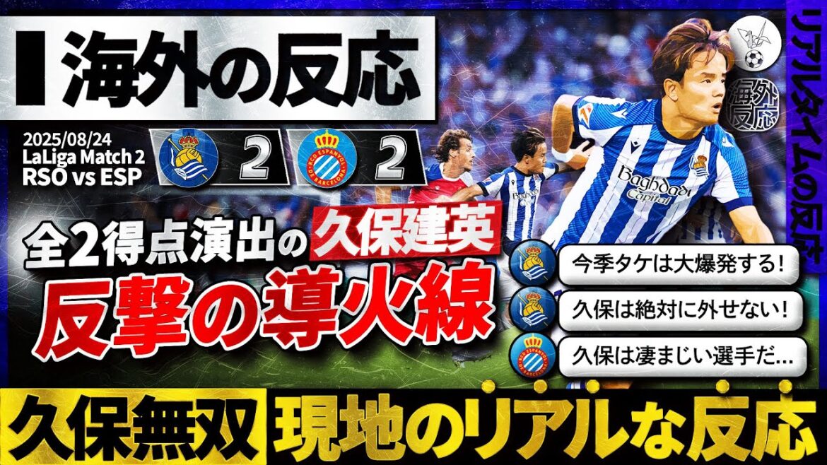 この動画では、この試合の久保建英選手に対しての海外の反応をリアルタイムでまとめましたのでご覧ください。