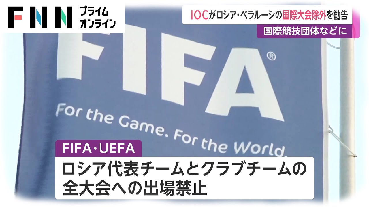 また、FIFA(国際サッカー連盟)とUEFA(ヨーロッパサッカー連盟)は、ロシアの代表チームとクラブチームについて、全ての大会への出場を禁止すると発表した。