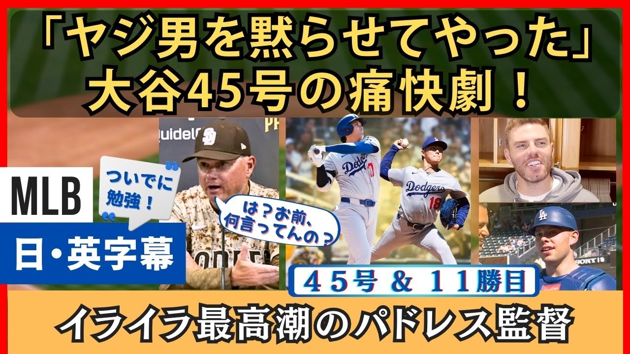 パドレスのマイク・シルト監督のイライラ会見、敵味方、両実況・解説などを日本語・英語字幕でお伝えします。